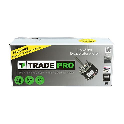TRADEPRO® – motors are 100% functionally tested during manufacturing and then retested after final assembly for everything from input power to Hi-Pot and continuity testing. For those who prefer a fixed fractional design, TRADEPRO® fixed fractional motors offers the same ideal combination of heavy duty construction and rugged durability you’d expect from the TRADEPRO® brand. Universal fixed fractional condenser motor 208 – 230V Single phase 2.2 amp Speeds – 800, 950, 1075 48Y frame 5″ keyed shaft 1/2″ diameter 10MF 370 or 440V capacitor Side shell mount is pre-drilled to accept mount wings and resilient mount wings Dynamic self-aligning bearing with reversible direction